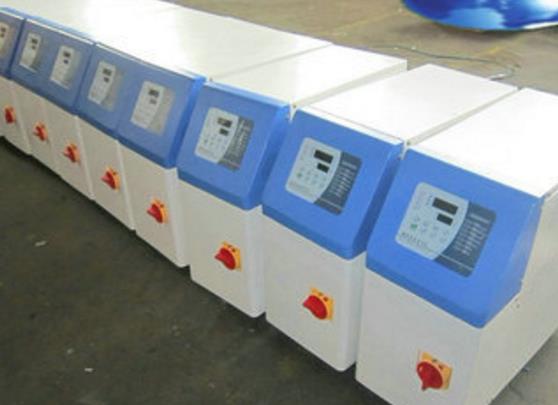 工作過程是,用高溫蒸汽先給模具進行快速加熱,到達指定溫度或時間進入塑膠填充,之后再用冷卻水給模具急速冷卻,冷卻到設定溫度或時間后,可以開模取出產品,然后再用壓縮空氣將模具內部的冷卻水吹干,等待下一個加熱的開始。